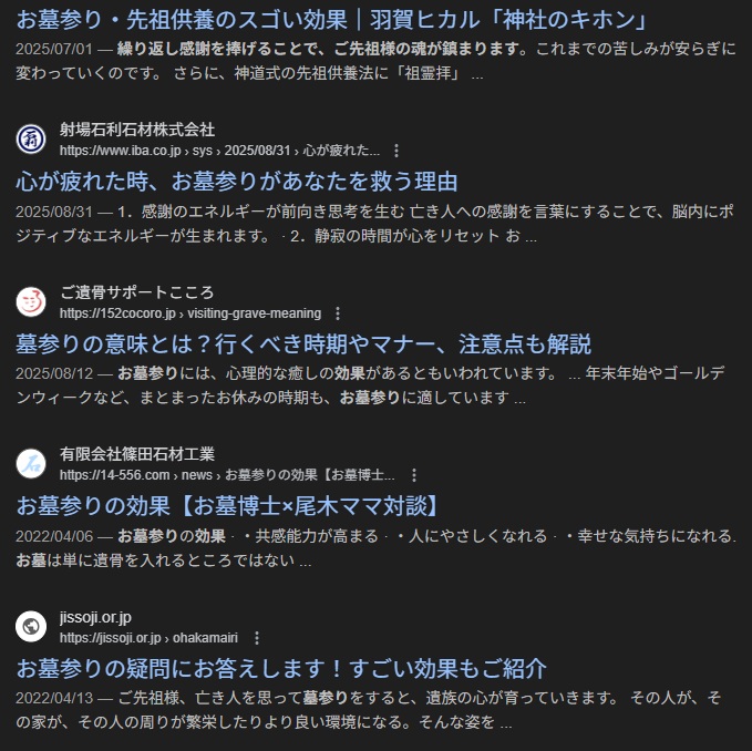 お墓の「パワースポット」化: 現代のパワースポット巡りにも通じ、心を癒し元気にする効果(メンタルケア)が期待できます。