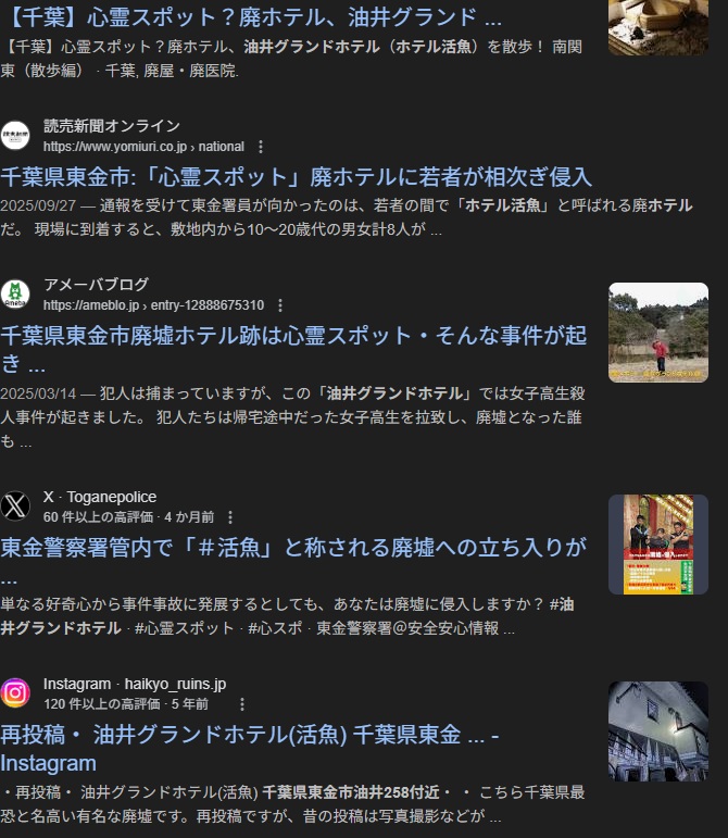 警察の対応: 地元の東金警察署はSNS等を通じて、単なる好奇心による立ち入りが重大な事件・事故に発展するリスクを警告し、職務質問や厳重注意を実施しています。