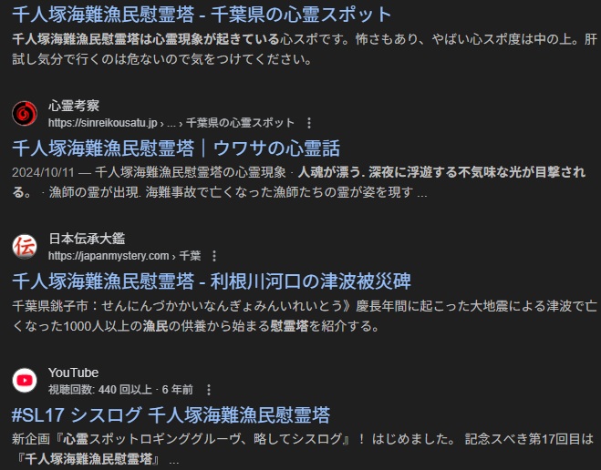 千人塚海難漁民慰霊塔(せんにんづかかいなんぎょみんいれいとう)は、心霊スポットとして言及されることはありますが、その地域が過去に多くの海難事故が発生した場所であるという歴史的な背景に基づいています。