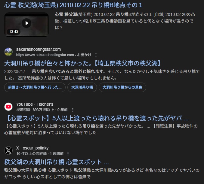 秩父湖のつり橋 心霊調査記録