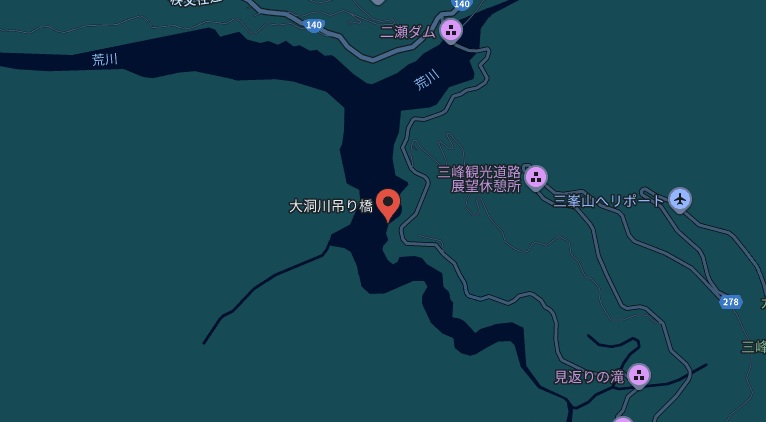 秩父湖のつり橋データ:埼玉県秩父市大滝 国道140号線