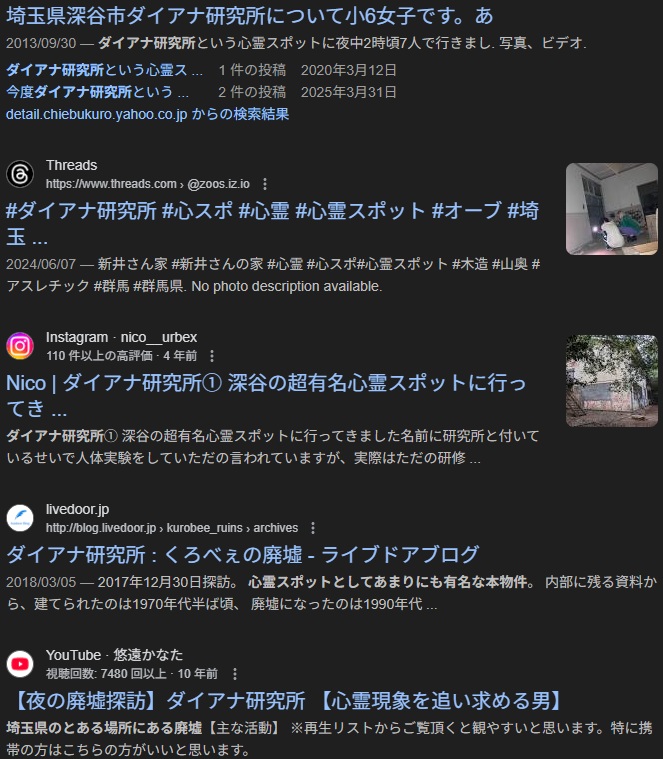 埼玉県深谷市にある通称「ダイアナ研究所」は、かつて心霊スポットとして知られていた廃墟です