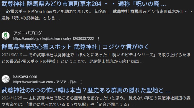 群馬県の「武尊神社」は、かつて心霊スポットや廃神社としてYouTubeなどで紹介されたことで無断侵入が相次ぎ、管理に困ってバリケードや監視カメラが設置される事態になりましたが、これはみどり市東町の水没した旧社地の跡地であり、実際に「心霊スポット」として噂されるのは、この場所が廃墟化していることと、ダム建設で水没した神社に関連する話が背景にあります。片品村にある、現在も「片品の猿追い祭り」で有名な武尊神社(ほたかじんじゃ)とは別の場所で、こちらは由緒ある神社です。
